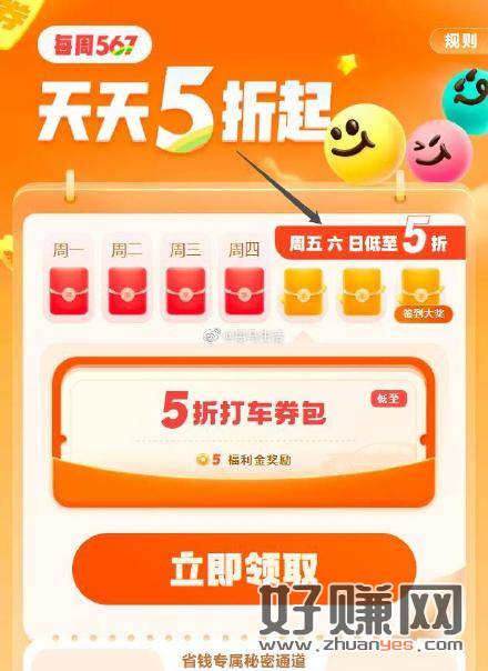 天天5折打车!滴滴每周567领神券