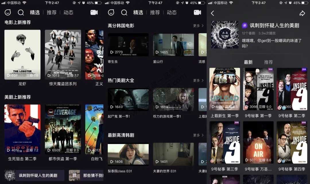 这里的「精选」专区拥有全网最新最热的美剧和韩剧资源,资源每日更新!软件内没有一丝广告,所有视频都是秒播。