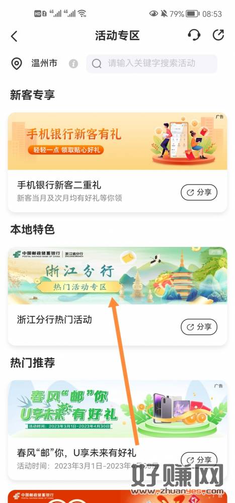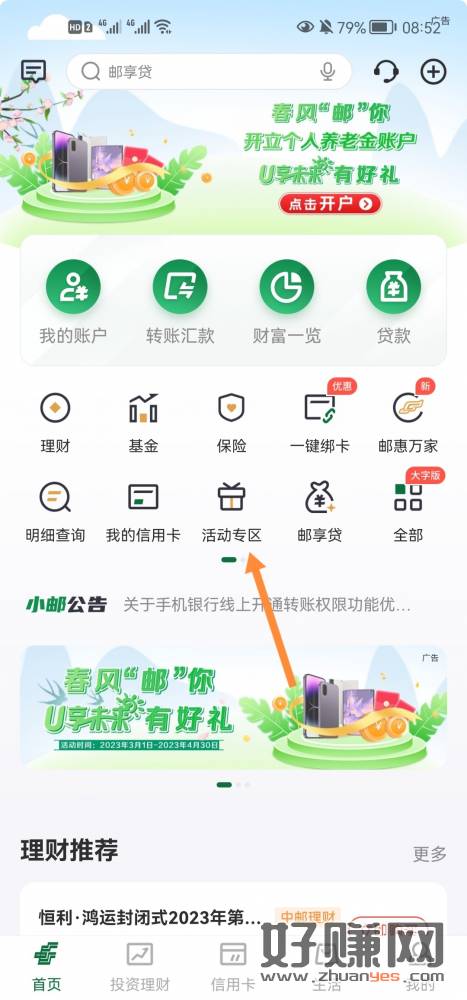 打开邮储银行,开通数字人民币可去邮储银行app首页活动专区抽