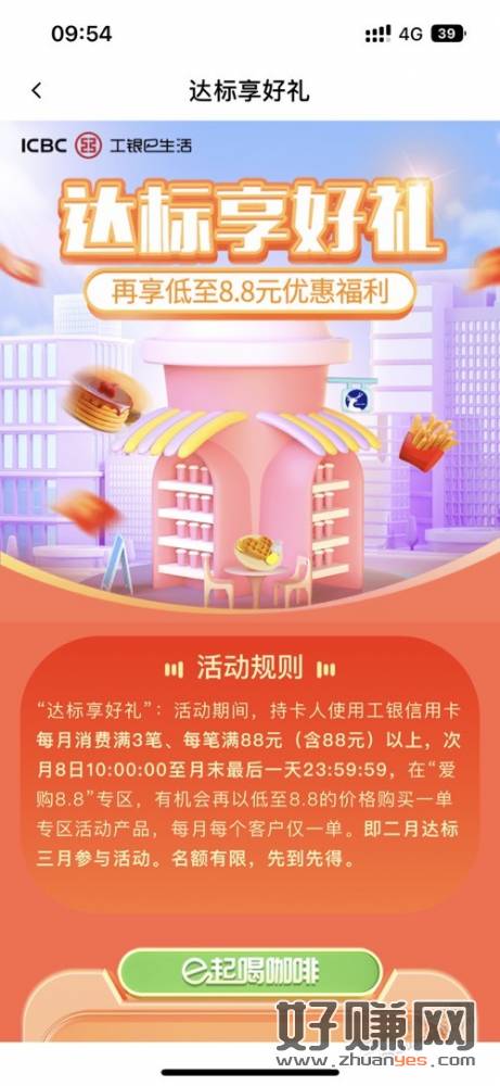 工银e生活 ,消费达标10点买8.8美团瑞幸