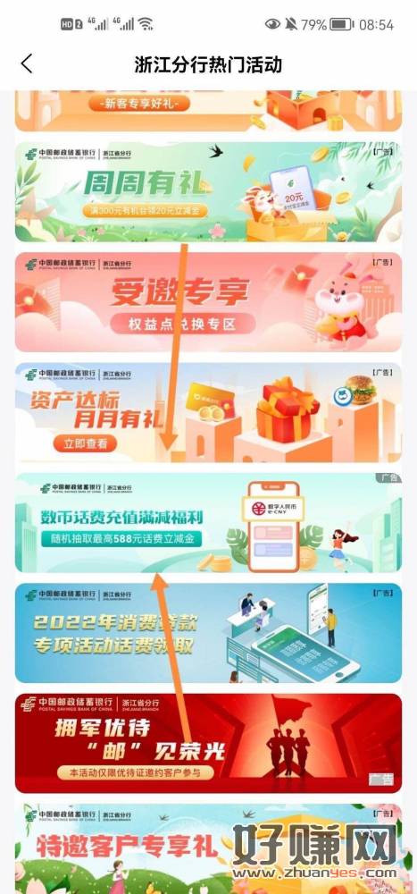 活动流程:开通数字人民币可去邮储银行app首页活动专区抽话费券