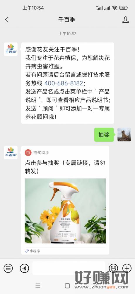 关注【千百季】回复“抽奖” 参与抽奖 奖品:治虫喷雾 开奖时间:先到先得