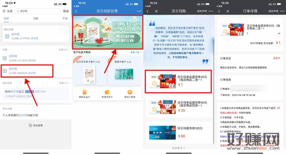 [ 民生银行1元撸沃尔玛20元券 ]民生银行APP搜索“沃尔玛”
