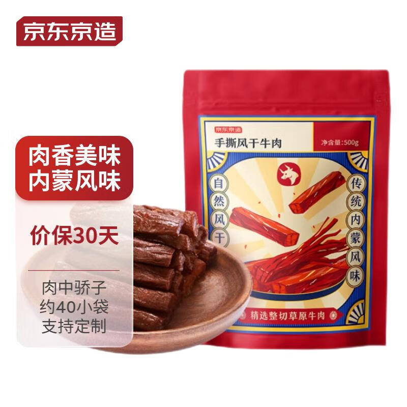 京东京造 手撕风干牛肉干500g,97亓自营包邮