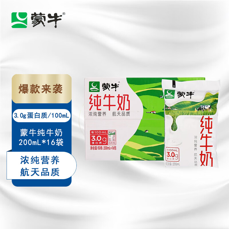 特价版付23.9元包u,蒙牛纯牛奶200mL*16袋/箱