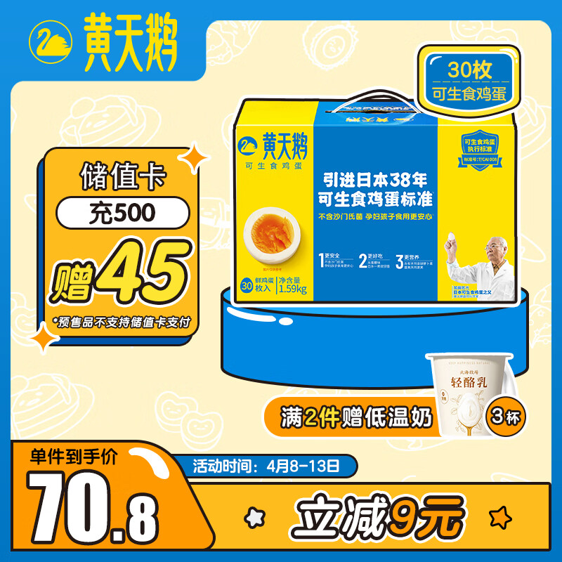 先入会,领页面下200-20券,黄天鹅 可生食鸡蛋