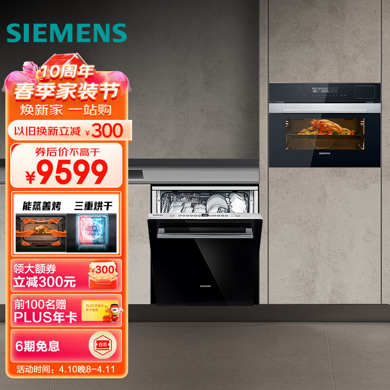 西门子(SIEMENS)全自动12套嵌入式洗碗机+蒸烤一体机套装 (带黑门板)
