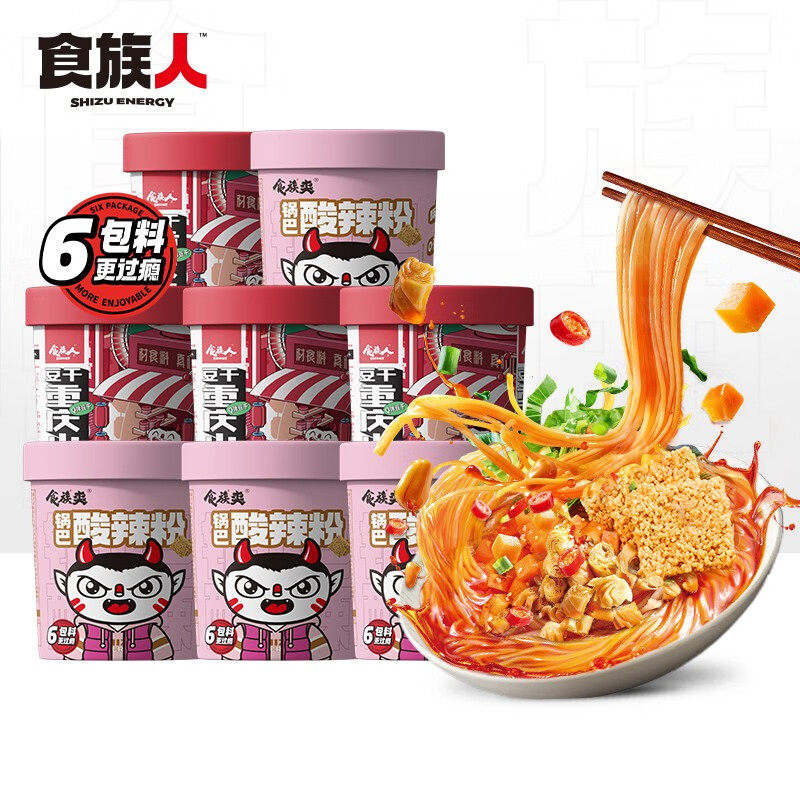 食族人 香辣口味非油炸桶面 8桶,锅巴酸辣粉4桶+重庆小面4桶