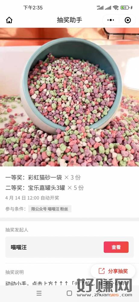 关注【喵喵汪】回复“抽奖” 参与抽奖 奖品:猫砂 罐头 开奖时间:4月14日