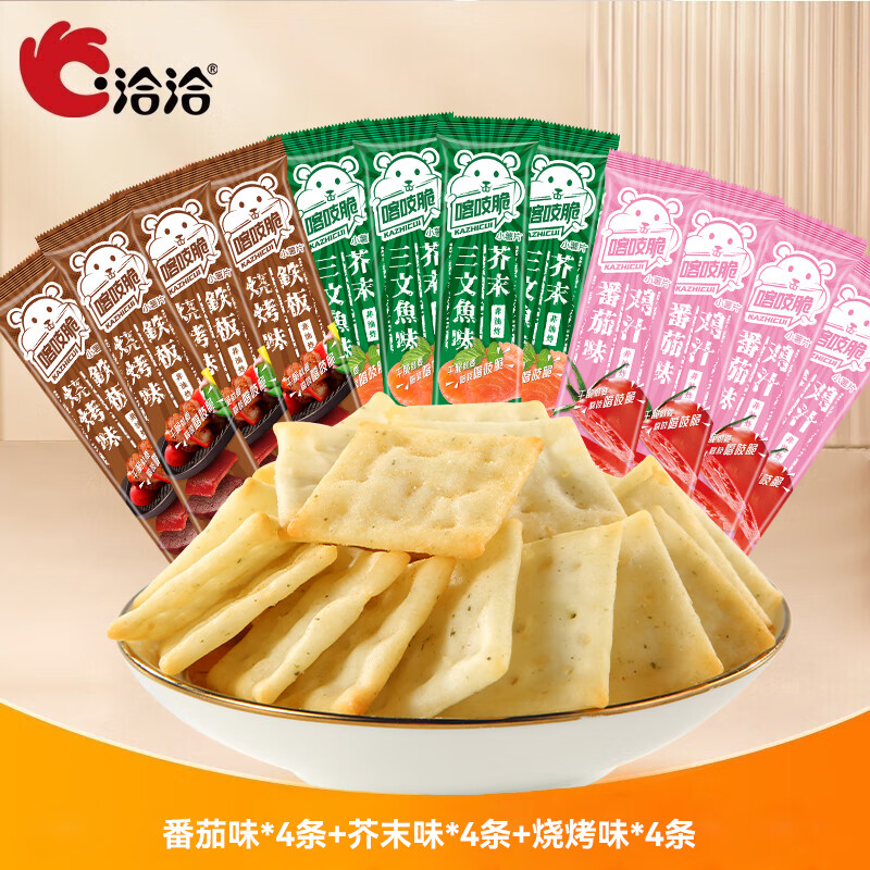 洽洽 非油炸咔吱脆薯片共12条,番茄味4+烧烤味4+芥末味4