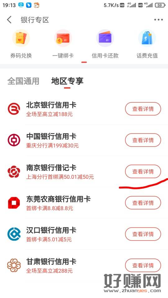 第二步,在地区专享中找到南京银行活动