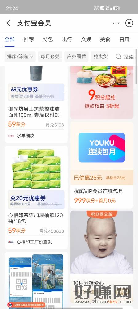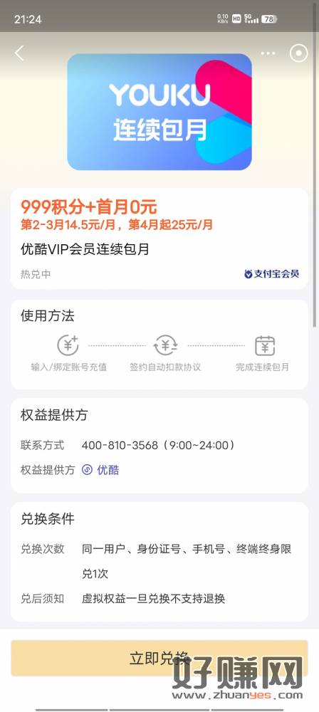 支付宝积分999兑换优酷会员一个月,可以卖别人,记得关闭自动