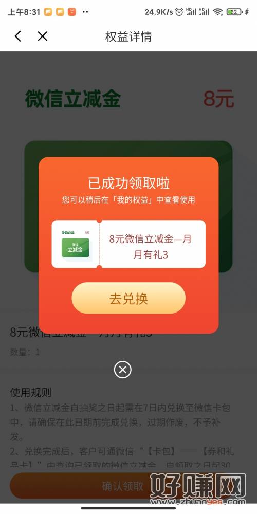 光大银行,我的权益里面。评估一次。必中8。随便填。要有任务才行。
