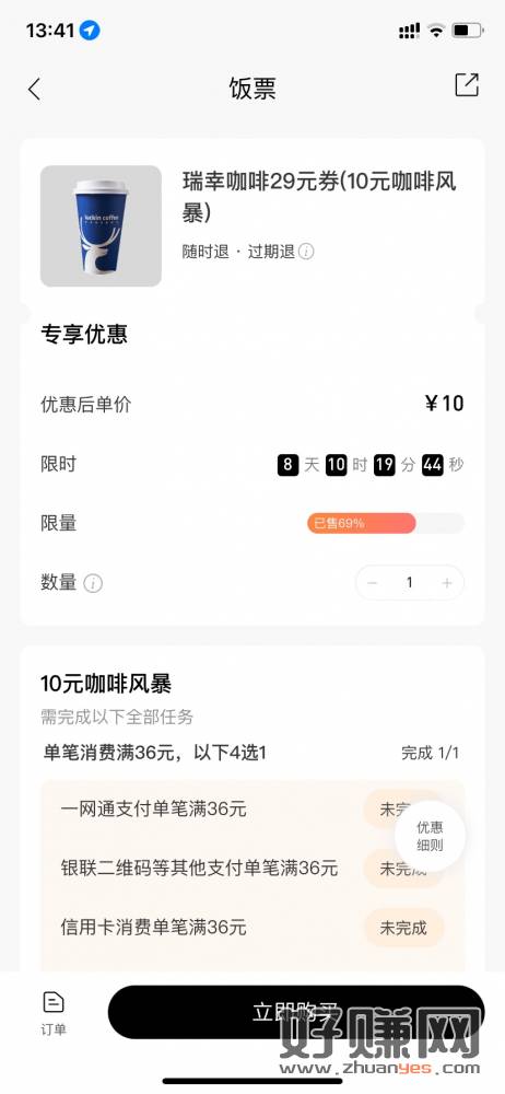 招商精选 10买29瑞幸通兑劵 需先用微信或者其他渠道消费36
