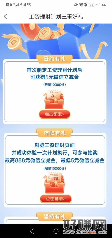 宁波银行首页工资理财,设置计划5,t 现完直接终止就行,还有投一次可以抽5到888立减金,一次最低六百,还有投多少月领奖励,计划我试了,别的没钱,没搞,老哥自己把握哈