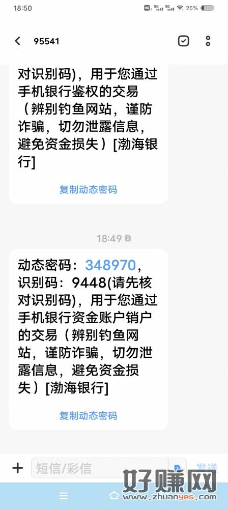 渤海银行养老金开户,能当天注销了,25+25话费充值券