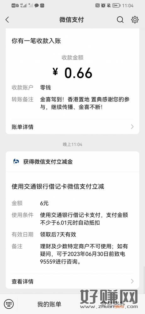 交通银行新人开户绑微信有6立减金。。。