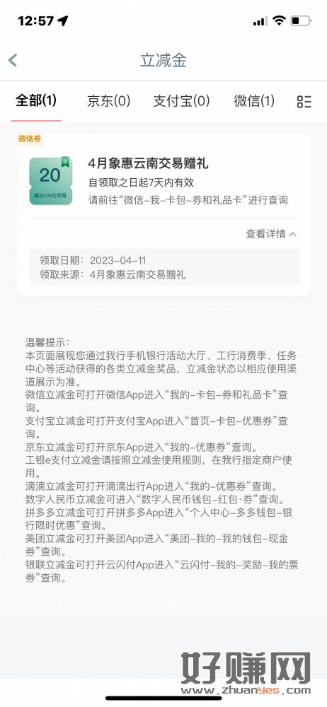 工商银行云南,交易赠礼,买一块钱 抽20不必中,限制云南卡