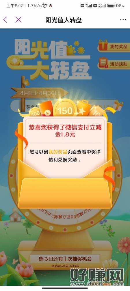 光大银行支付有优惠,大转盘刚中1.8小水去试试