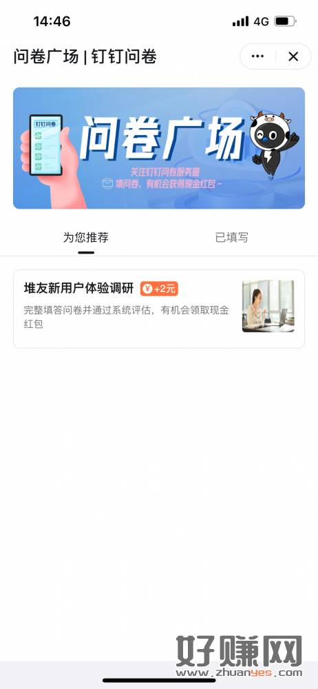 丁丁问卷有的去,打开点链接登陆堆友在返回填问卷就行