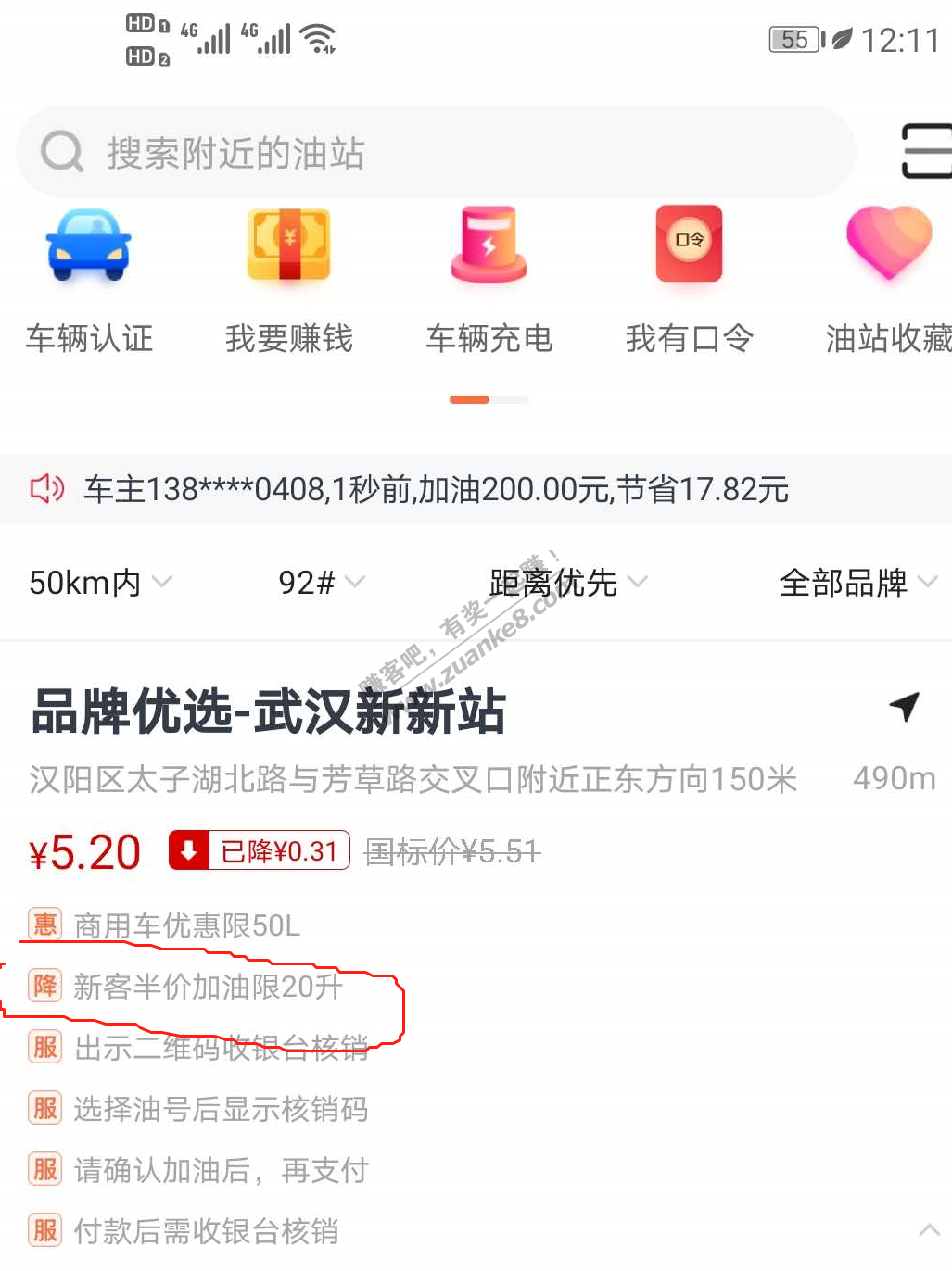 直接上图吧,新客20L半价,不是所有的加油站都有这个活动,看看你们附近有没有,可惜了邮箱太小,只加了两个号,只要有手机号注册可以随便加,一个手机号20L