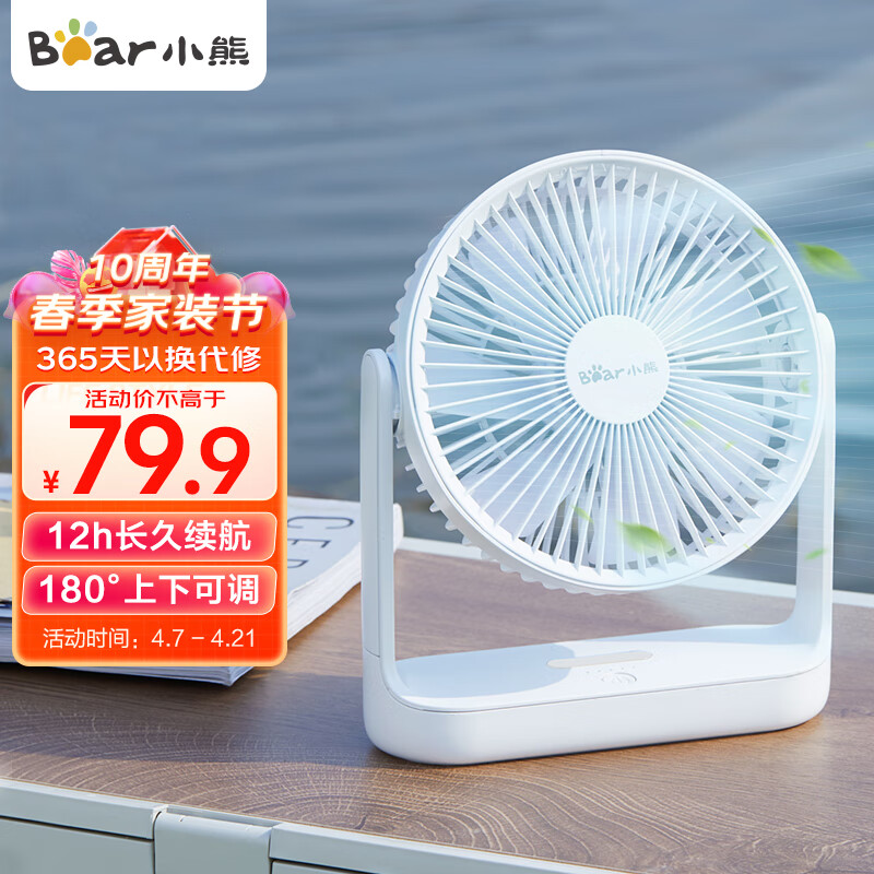 小熊(Bear)轻音办公室长续航充电台式风扇