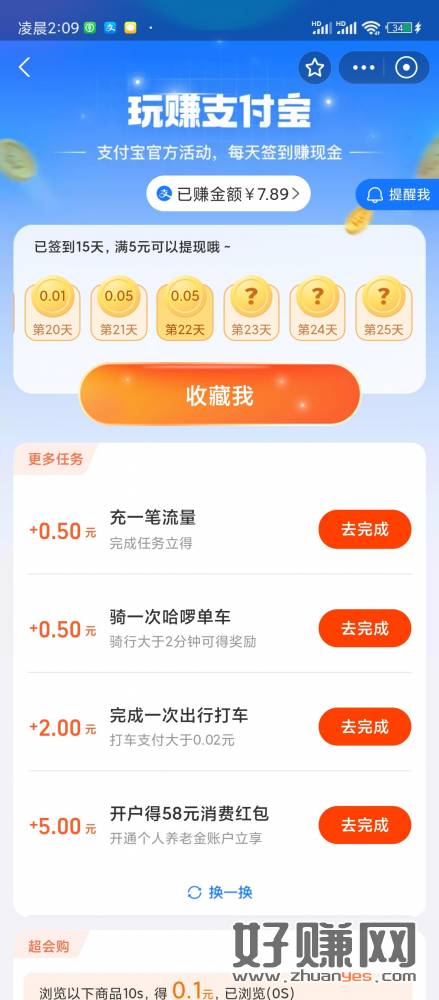 玩赚支付宝刷新了任务,上啊,把金额调到最小