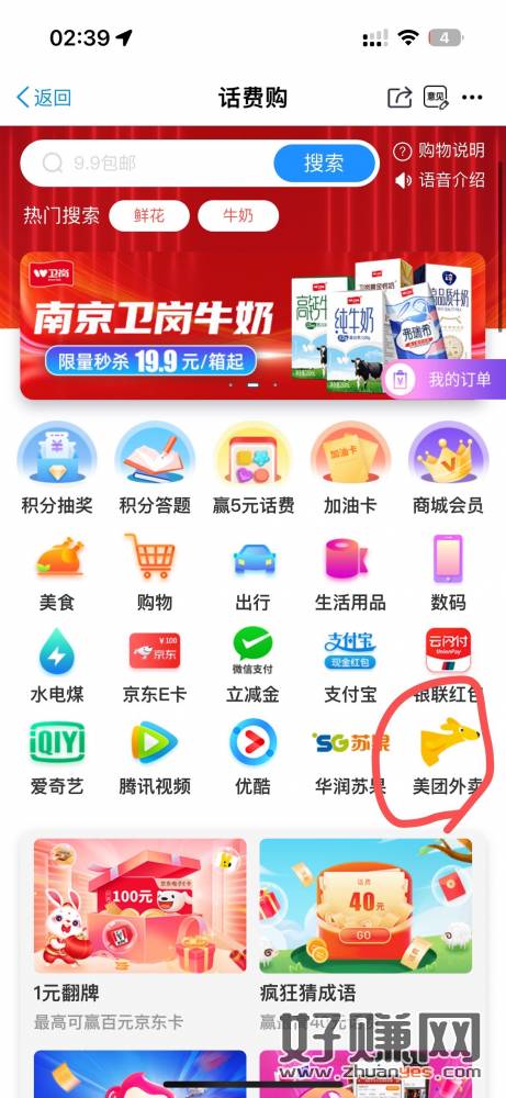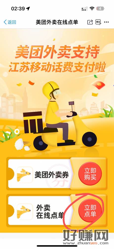 江苏移动话费94折t现方法 适合喜欢点外卖的