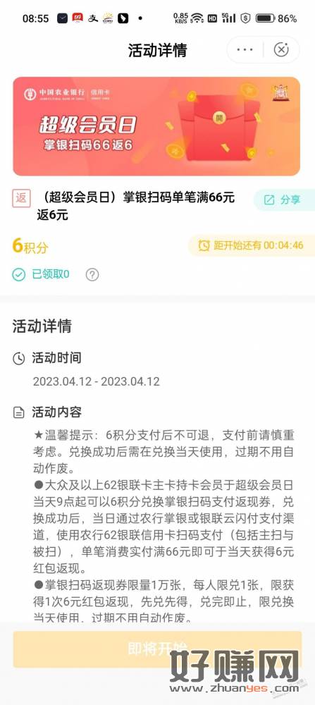 农行XYK会员日66返6
