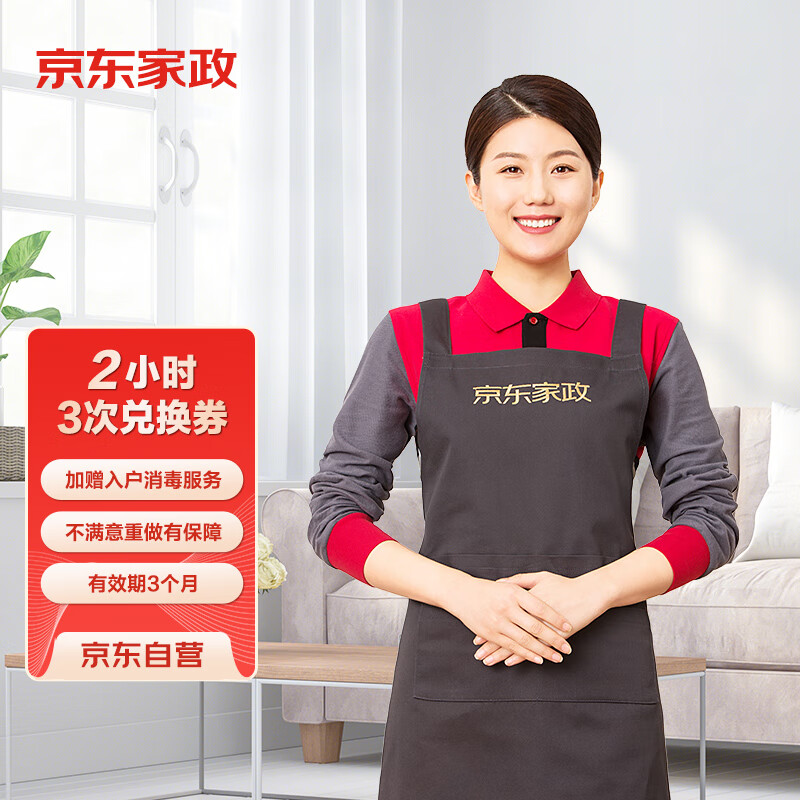 [ 自营 ]京东家政 2小时日常保洁上门服务3次电子兑换券