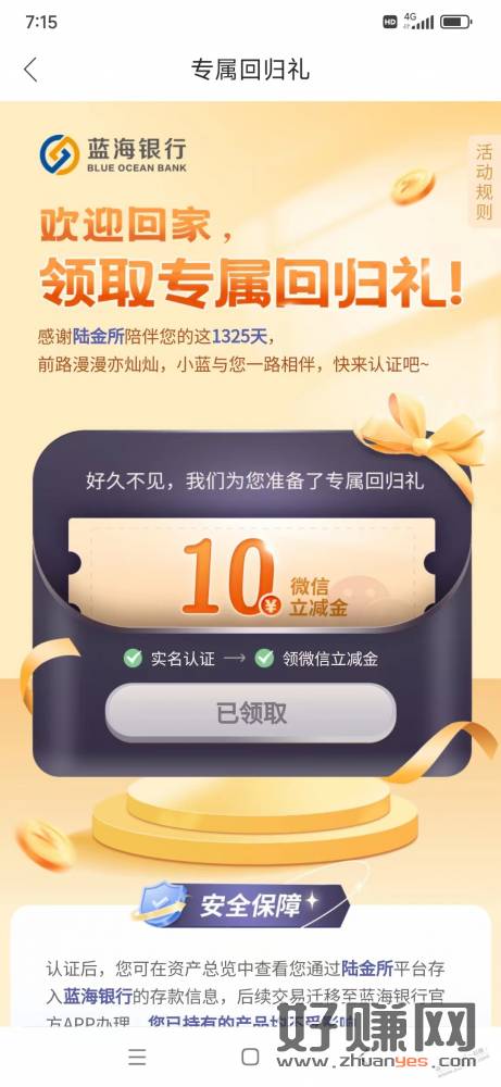 蓝海银行老用户10元立减金