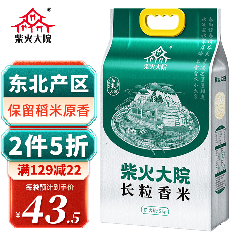 先领页面下129-24券,柴火大院 东北长粒香大米10斤 当季新米