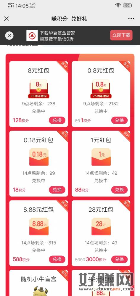 华夏基金公众号右4签到积分,周年庆典,有积分的去,那个8元要V5