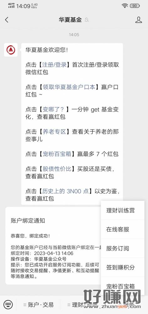 华夏基金公众号右4签到积分,周年庆典,有积分的去,那个8元要