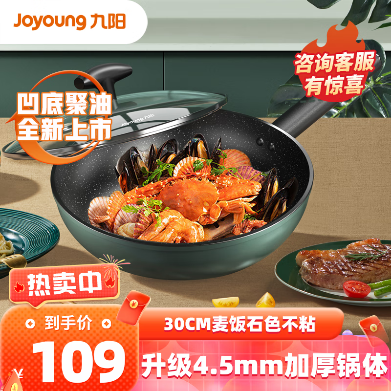 PLUS领200-10全品,九阳(Joyoung)新款聚油家用不粘锅炒锅 30cm