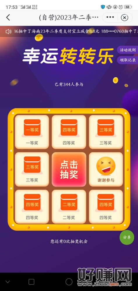 建.行 好运连连抽 有水哈