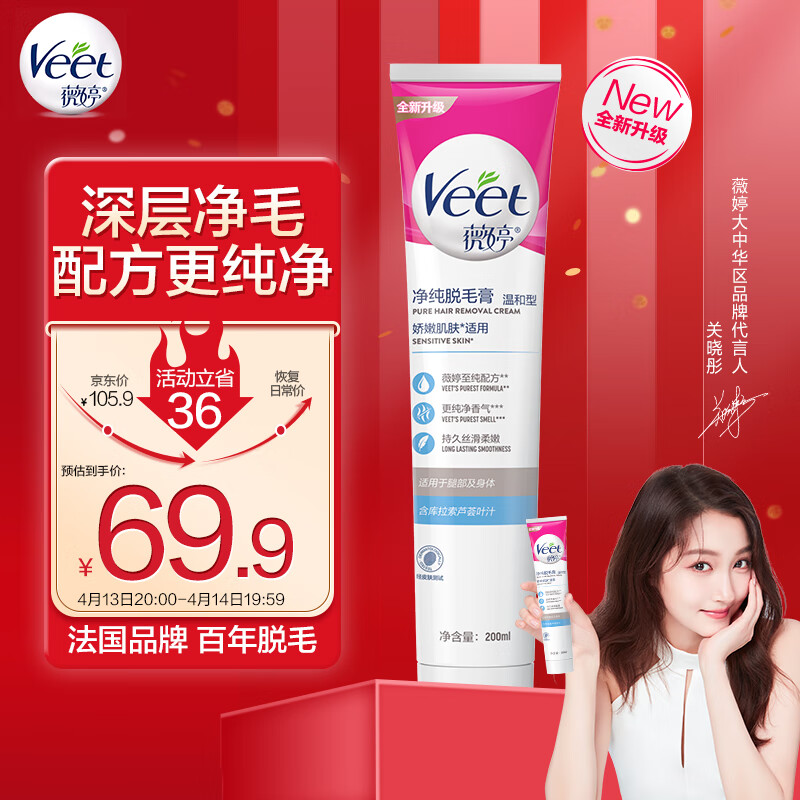 薇婷Veet男女士温和净纯脱毛200ml,拍下66.9亓+u