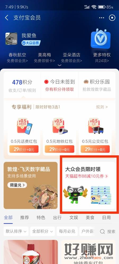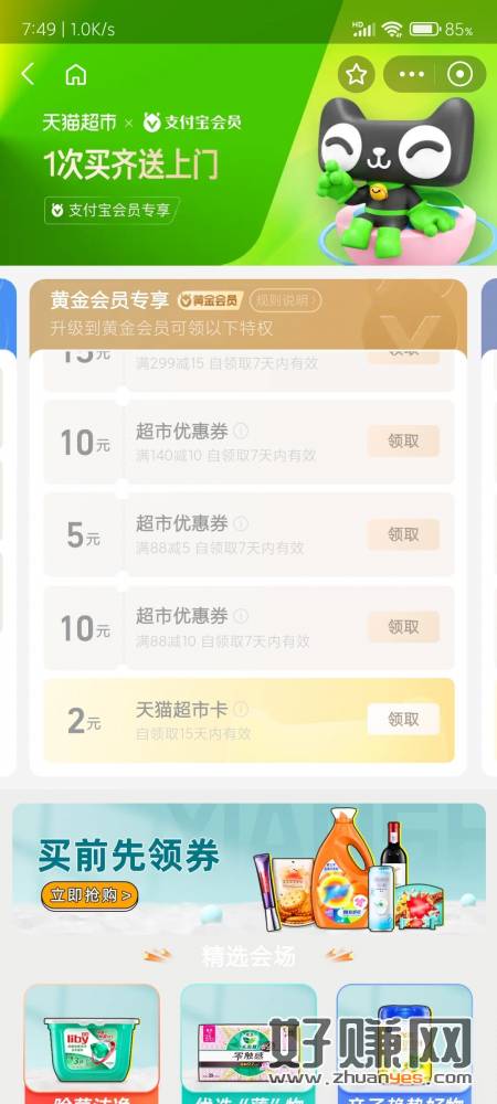 zfb黄金以上会员领天超市卡