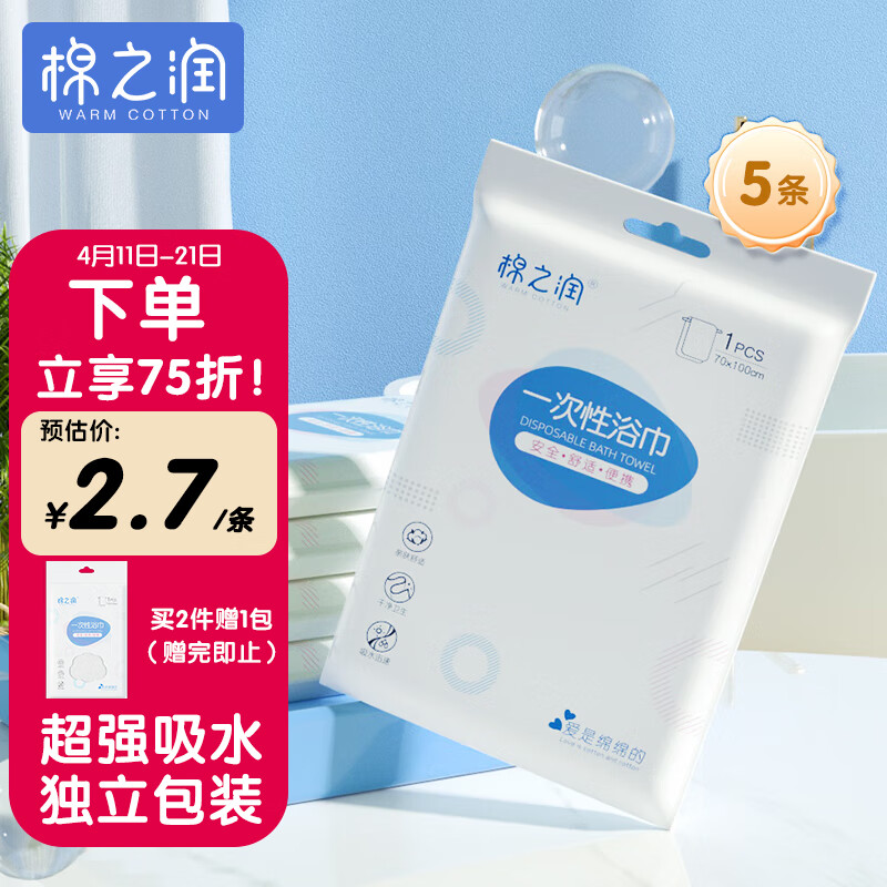 先领页面下1享95折券,棉之润 一次性加厚浴巾5条装 70*100cm