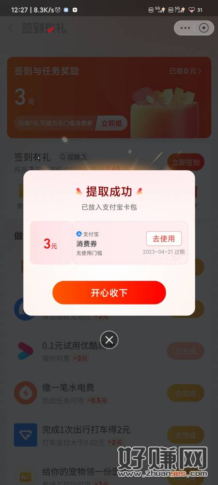 支付宝搜消费券签到里面有的有,有的没有还有其他任务记得取消自动续费