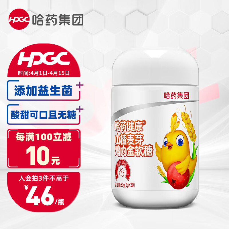 先领147-73券,哈药 山楂麦芽鸡内金软糖60g
