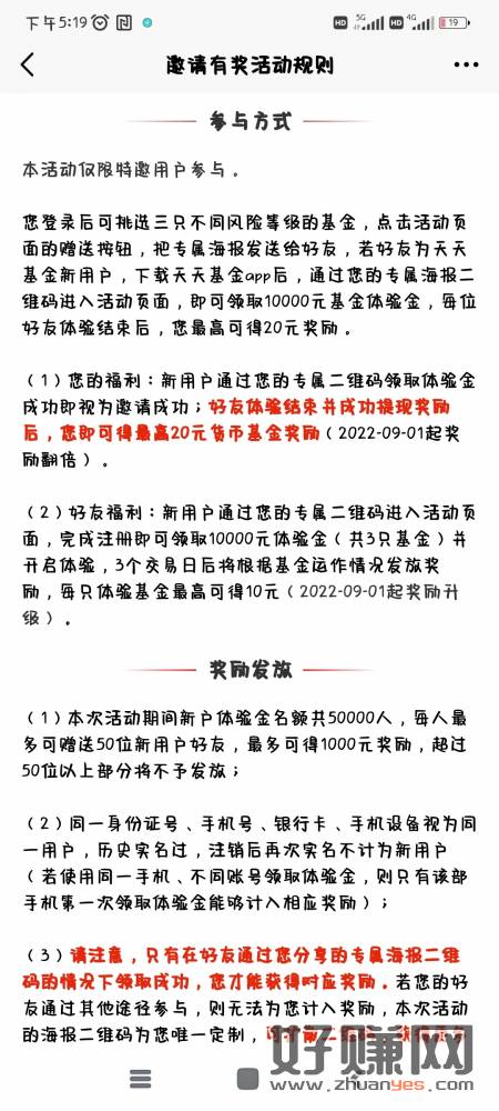 分享个大毛吧,天天基金搜邀请有奖,邀请新用户领取体验金提现自己赚20块钱好友最高白嫖20现在放单平台放单邀人才几块