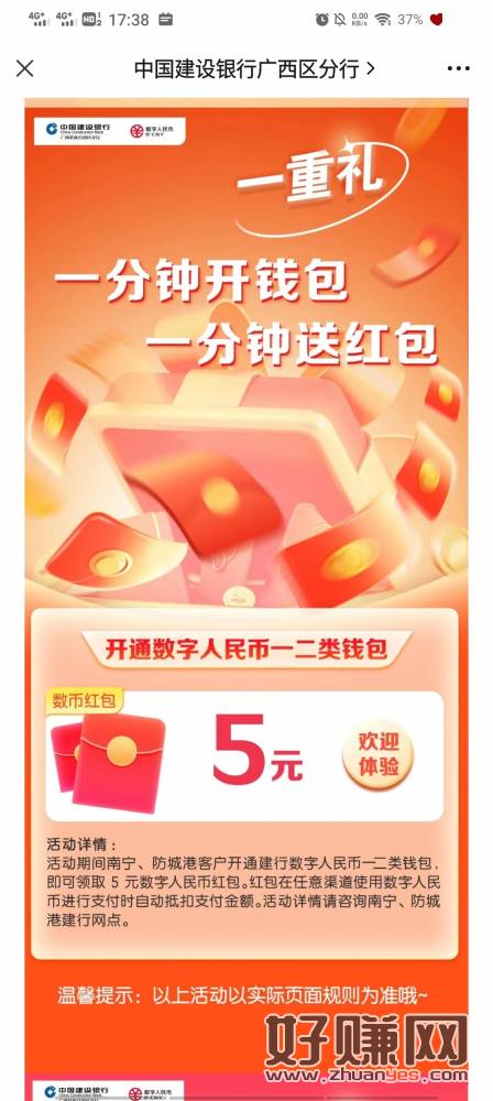 建行5数币,要求:南宁、防城港客户开通一类或者二类数字人民币