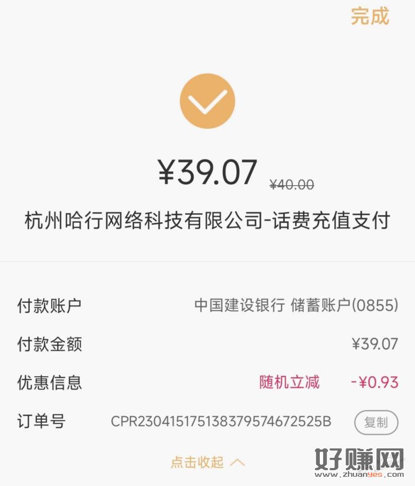 哈罗APP话费充值,50减10,用云闪付支付,再减1左右
