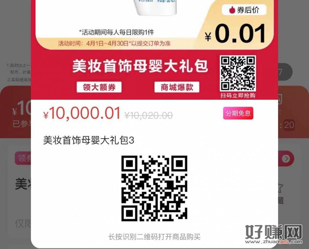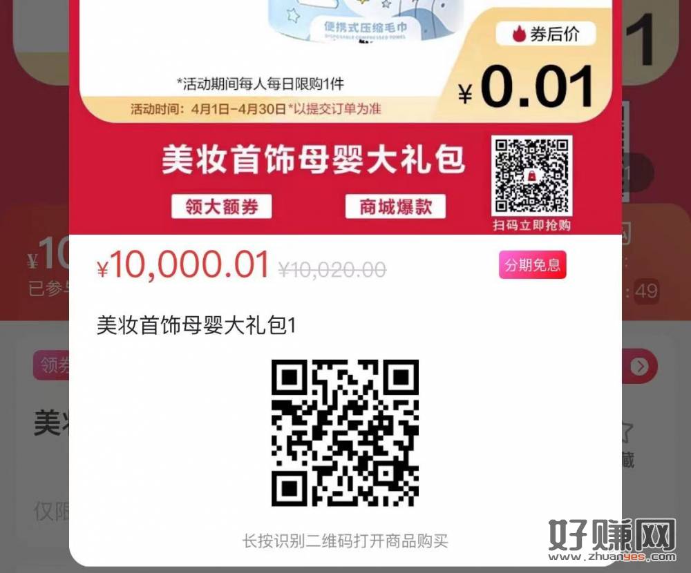 记得要先领1万的券。付0.01元