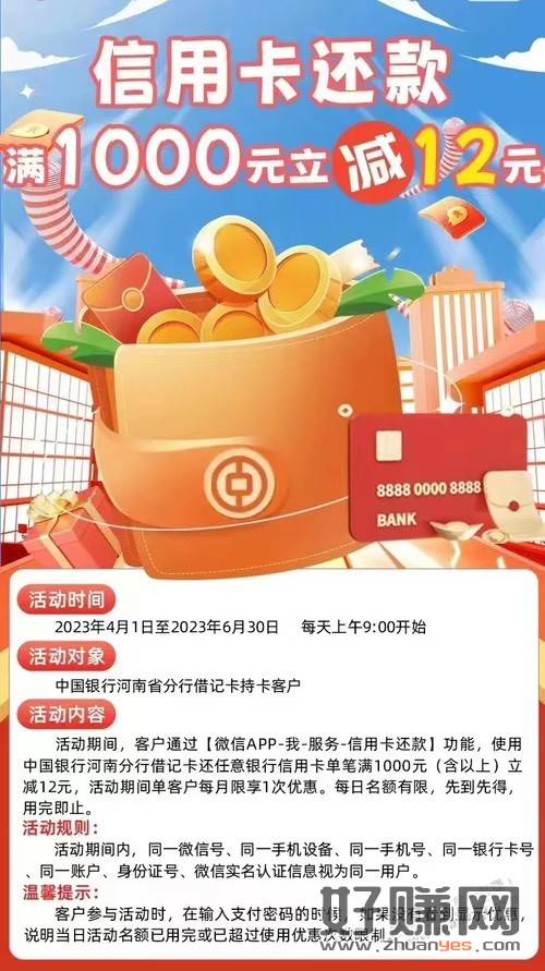 中国银行河南借记卡,微信 xing/用卡还款,1000-12