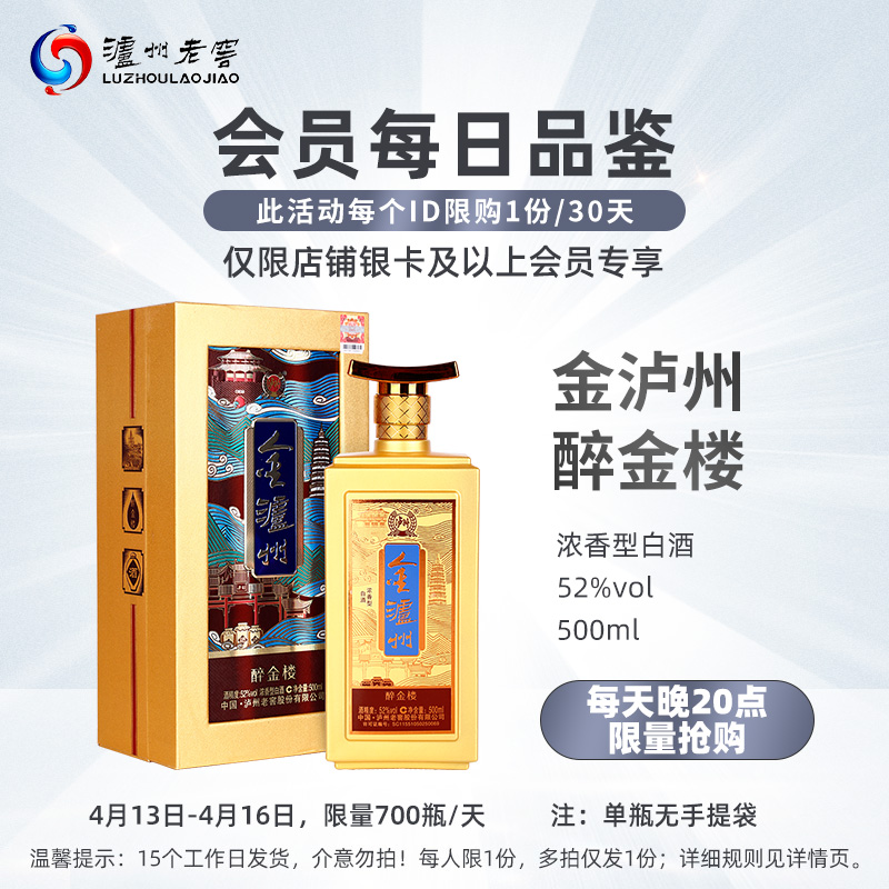 1符合19.9购,金泸州醉金楼52度500ml ,(限银卡及以上会员)