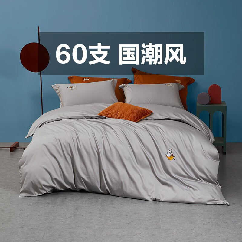 罗莱(LUOLAI)60支全棉纯色四件套长绒1.5米床(被套200x230cm)