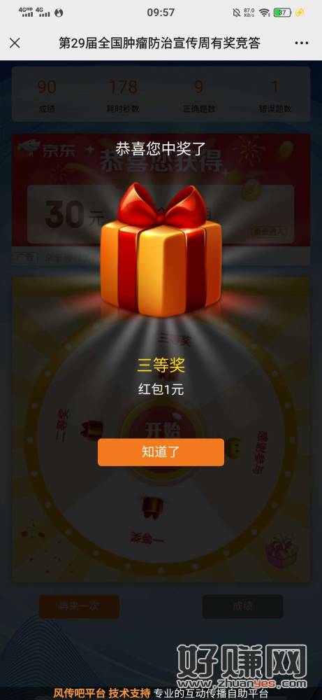 【活动规则】答对8道题,可获得一次抽奖机会,分享朋友圈获得一次答题机会