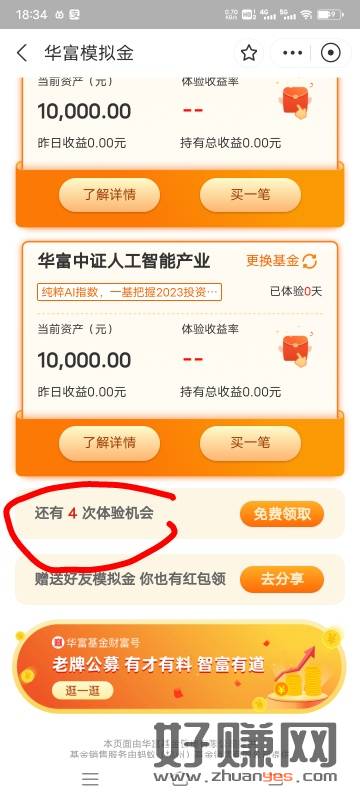 支付宝搜华富体验金,领10万体验金,划到下面把机会废完,可以